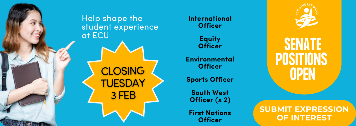 The ECU Student Guild is seeking Expressions of Interest (EOI) for the following Senate positions:
